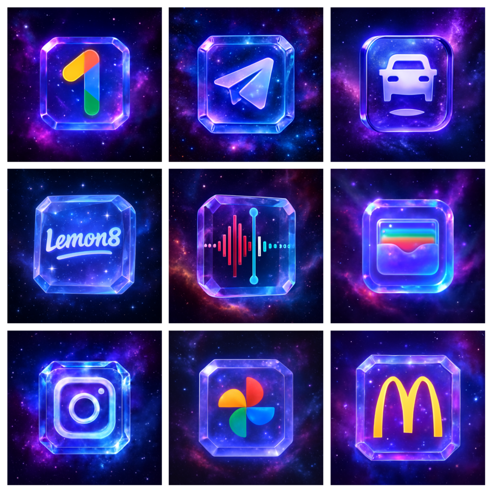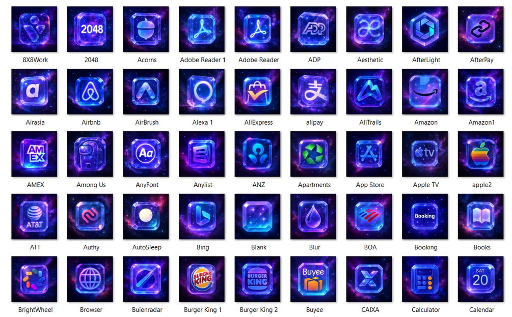 210 Galaxy Crystal Style App Icon Pack iOS & Popular Apps Lifetime Updates