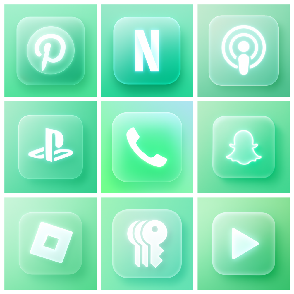 100 Green Glass morphism Style App Icon Pack iOS & Popular Apps Lifetime Updates