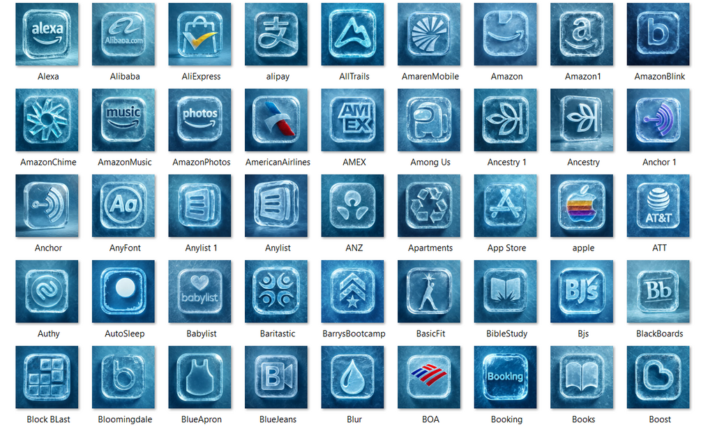 Bring a touch of Ice Sculpture feeling to your phone screen! This unique Ice Sculpture Style App Icon Pack includes meticulously designed icons, covering iOS built-in apps and dozens of your favorite popular applications.