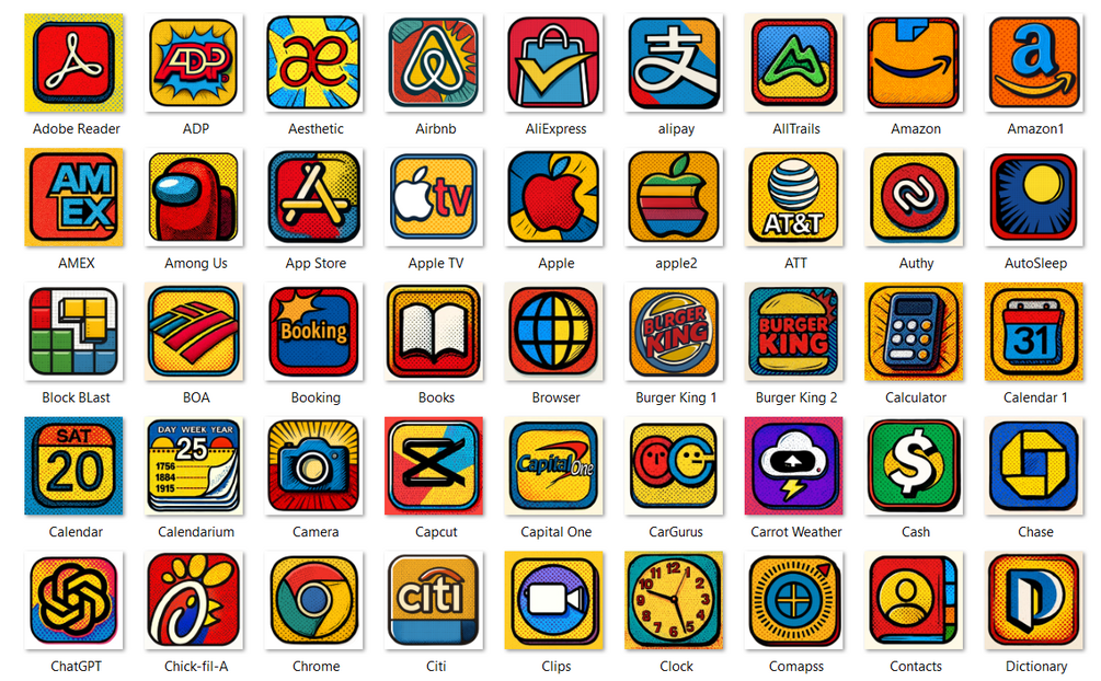 225 Pop Art Style App Icon Pack iOS Icon theme & Popular Apps Lifetime Updates